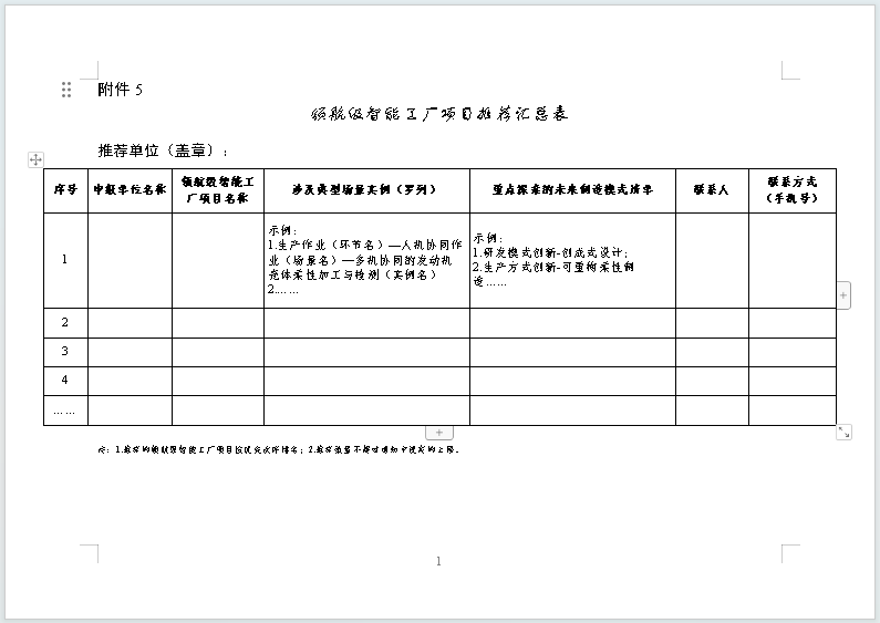 3.推荐单位应于2025年8月1日前完成线上审核,按推荐项目优先顺序填写推荐汇总表(附件3),并将加盖公章的纸质版申报书(须与线上填报一致)、推荐汇总表、推荐函各1份,报送工业和信息化部(装备工业一司),有关中央企业同步报送国务院国资委(科技创新局)。