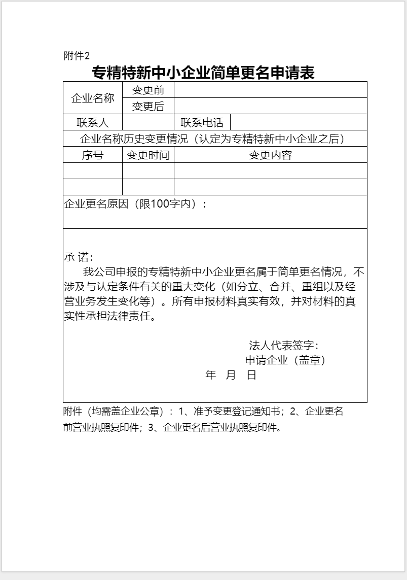 1.专精特新中小企业简单更名申请表